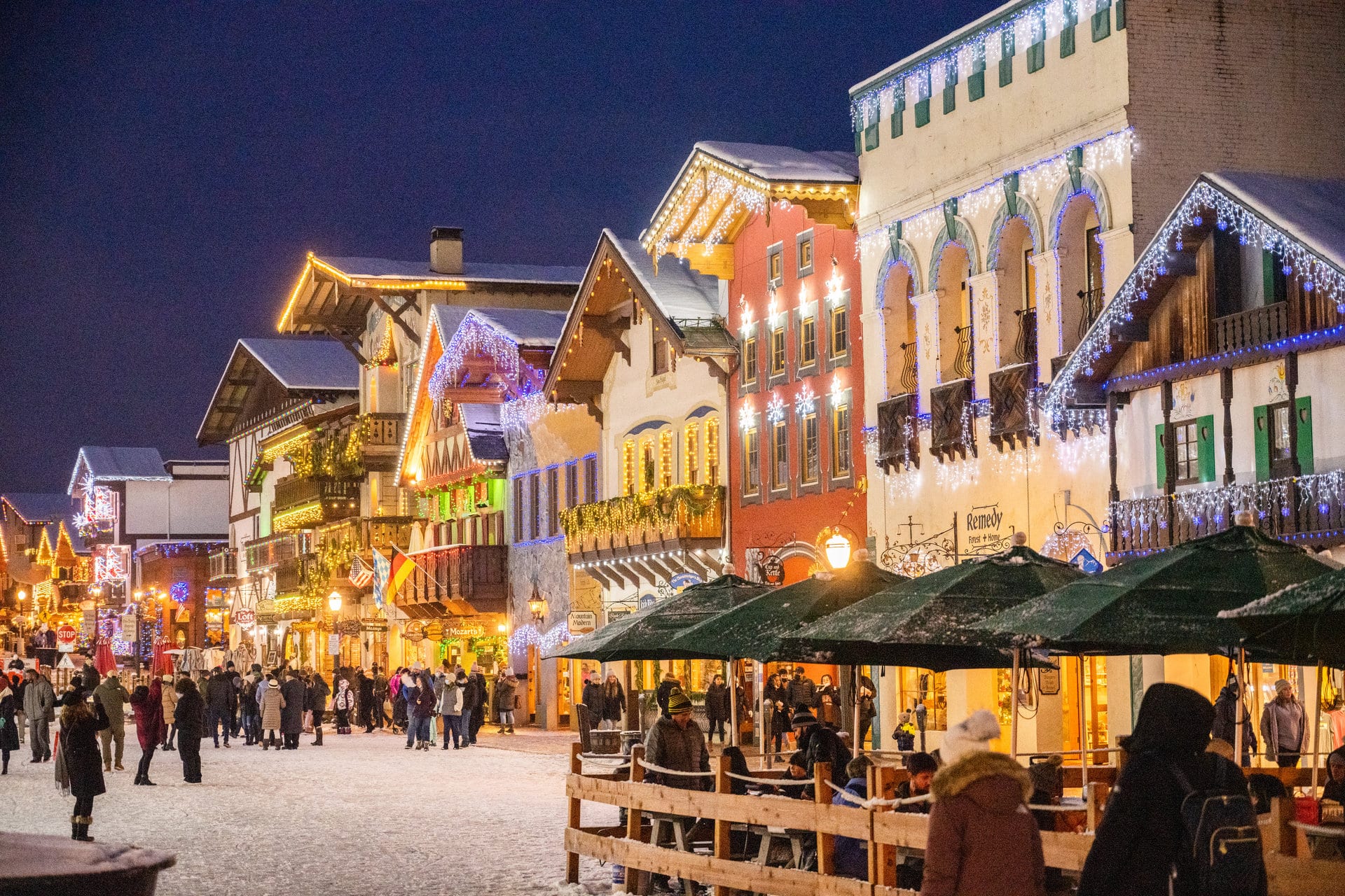In Breckenridge: Breckenridge’s Main Street shines with garlands and lights. Race in the zany Race of the Santas, enjoy holiday performances, and savor a warm cup ‘o cocoa at a local café.