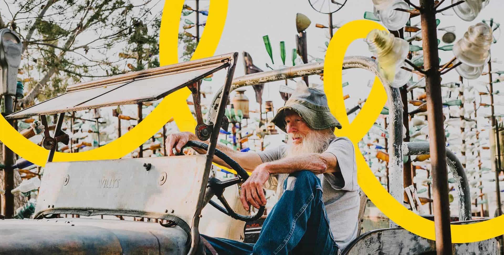 The sharp edges of glass are where the true value of Elmer’s creations live. They remind onlookers that this is not just another roadside attraction.