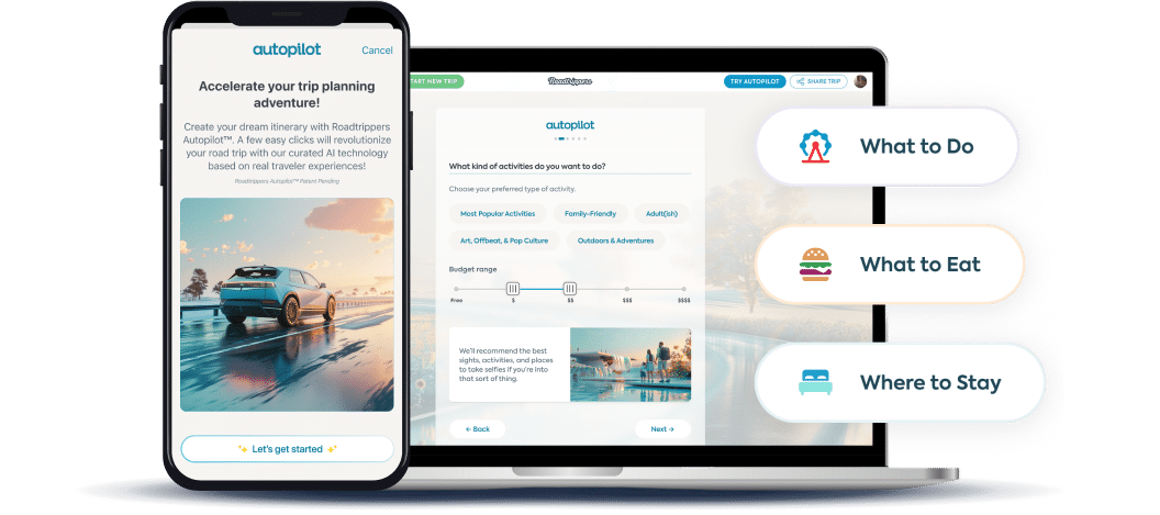 - Automatic Trip Planning: With the Roadtrippers Autopilot™ tool, you can take the heavy lifting out of trip planning. Answer just a few questions about your travel preferences, and Autopilot™ will use data from 38 million real-life trips to build a custom multi-state road trip for you.